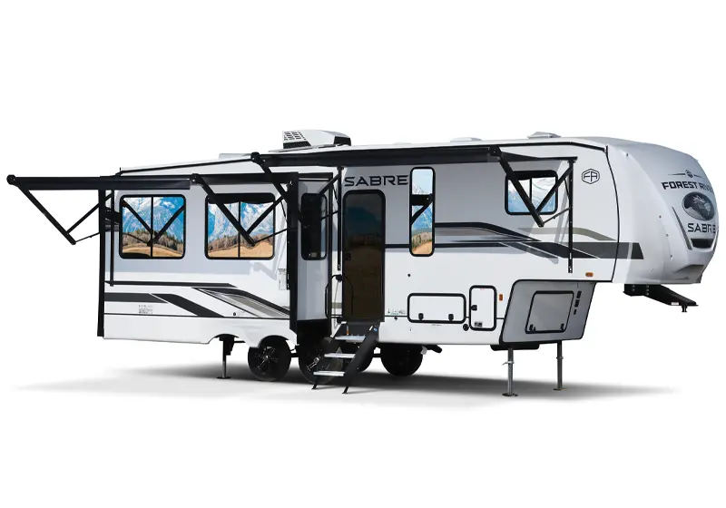 The Forest River Sabre fifth-wheel RV series offers a perfect blend of luxury, comfort, and practicality, making it ideal for travelers who want a high-end experience on the road. With spacious interiors and thoughtful layouts, Sabre models provide a home-like feel with modern kitchens, cozy sleeping arrangements, and inviting living spaces. Designed for convenience, these RVs include user-friendly features like climate control, entertainment centers, and ample storage. Whether you’re looking for a relaxing getaway or a full-time adventure, the Sabre series delivers quality craftsmanship and innovative design at an affordable price.